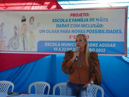 A Escola Municipal Padre Aguiar deu início à 5ª edição do Projeto “Escola e Família de mãos dadas com a Inclusão: um olhar para as novas possibilidades”. O objetivo é proporcionar a toda comunidade escolar vivências que permitam um olhar mais sensível e prático para as diversas possibilidades de aprendizagem, e ampliar as perspectivas no acesso da pessoa com ou sem deficiência no âmbito escolar, familiar e social. Após duas realizações no formato online, por conta da pandemia, a ação voltou a ser presencial.