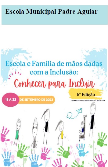 A Escola Municipal Padre Aguiar realiza entre os dias 18 a 22 de setembro, nas suas dependências, a 6ᵃ Edição do Projeto “Escola e Família de mãos dadas com a Inclusão: Conhecer para Incluir”.
