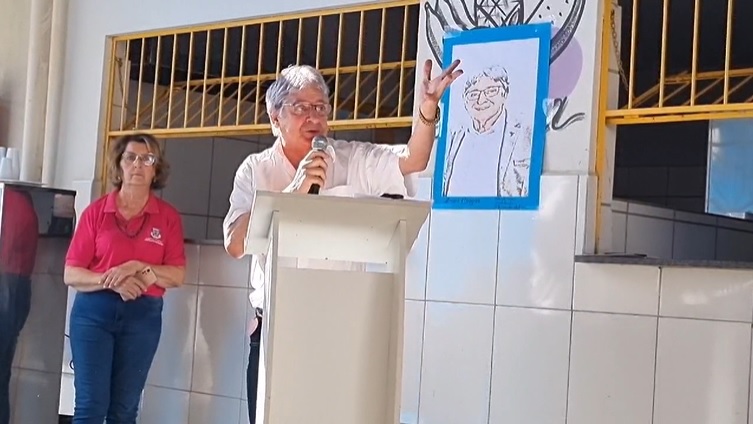 Emoção – Aconteceram dois momentos importantes e muita emoção na cerimônia. A diretora Guacyra leu a poesia escrita pela professora de Língua Portuguesa, Maria Lúcia dos Santos, que tem como título “Mãe”, trazendo à memória do autor, Isabel de Oliveira Freitas, sua genitora, que ele perdeu com apenas dois anos de idade.