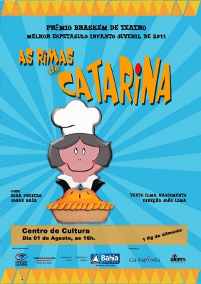 Nos dias 30 e 31 de julho, às 9h e 14h respectivamente, serão realizadas apresentações fechadas para as escolas municipais do espetáculo teatral “As Rimas de Catarina”. Já no dia 1º de agosto, o espetáculo será aberto ao público e exibido às 16h. As apresentações acontecerão no Centro de Cultura Camillo de Jesus Lima e o ingresso para a sessão da quinta-feira será 1 Kg de alimento.