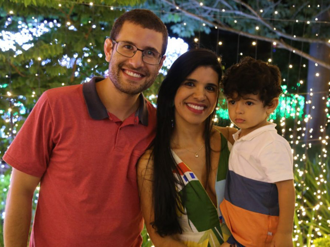 Victor Lima, acompanhado da esposa Tais Moreno e do filho Théo
