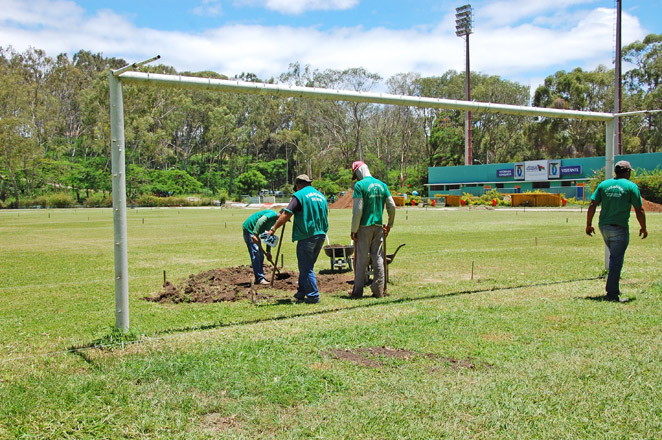 A primeira etapa de intervenções compreendeu o processo de poda do piso do estádio. Agora, a equipe trabalha na adubação e fertilização do local que vai contar com uma mistura de terra, areia, adubos químicos e orgânicos e com adubação nitrogenada. Tudo isso vai revigorar o gramado do estádio.