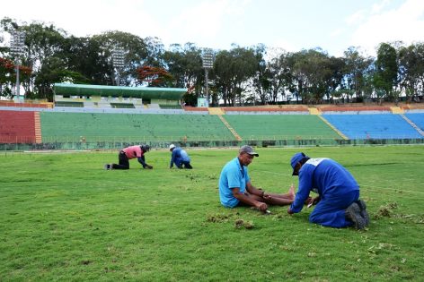 O gramado também está sendo preparado para a bola rolar. Para isso, funcionários da Secretaria Municipal de Meio Ambiente estão trabalhando na erradicação das ervas daninhas. “É um procedimento normal visto que no período choveu e as sementes quebraram dormência, fazendo brotar essa ervas daninhas”, explicou a secretária do Meio Ambiente e Engenheira Agrônoma, Luzia Vieira.