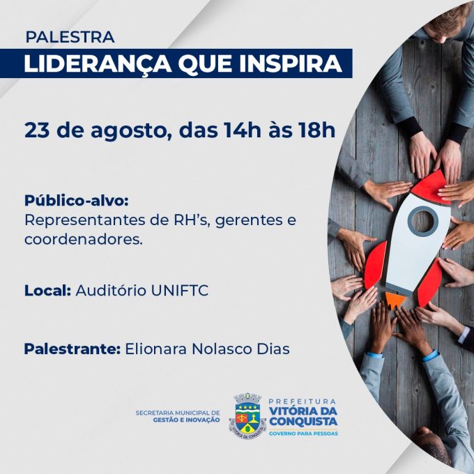 Com o objetivo de desenvolver competências, aumentar a produtividade e melhorar a qualidade de vida dos colaboradores e líderes, a Secretaria Municipal de Gestão e Inovação (Semgi) irá promover uma palestra na próxima quarta-feira (23).