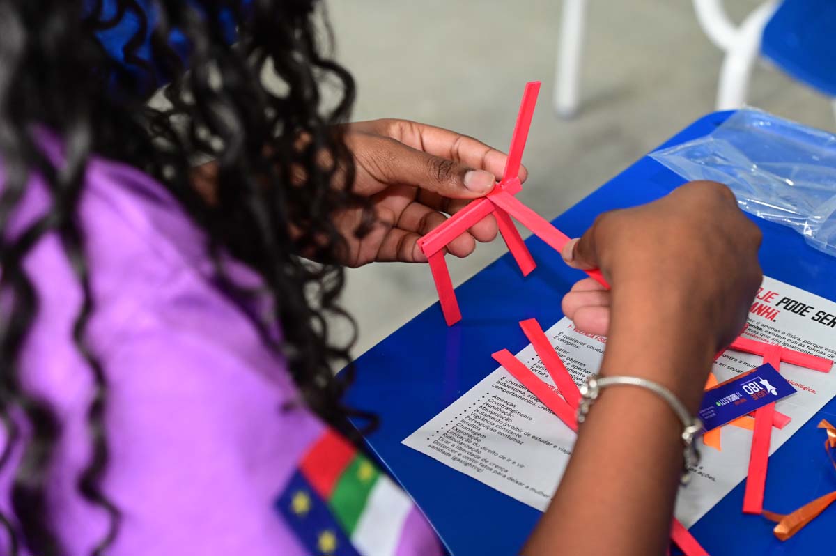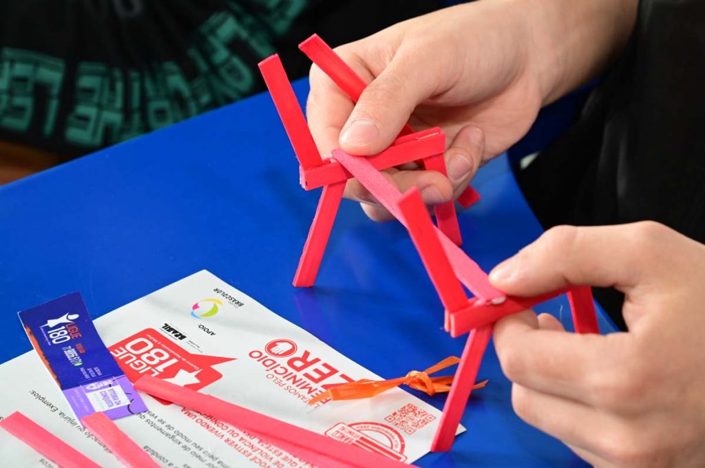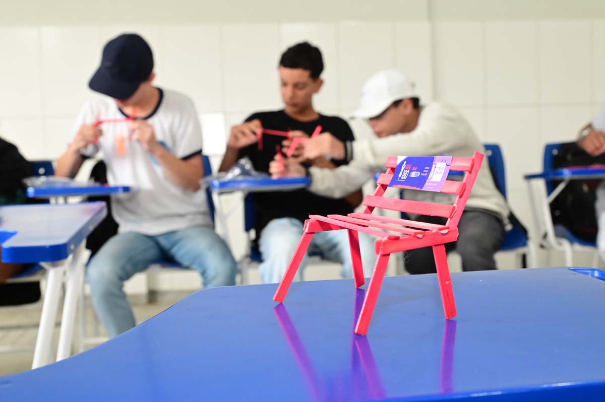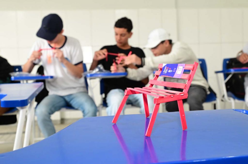 Além de palestra sobre os tipos de violência contra a mulher, as formas de denunciar e a importância do combate a essa prática, os alunos adolescentes confeccionaram banquinhos vermelhos, símbolo de memória, respeito e compromisso com a vida.