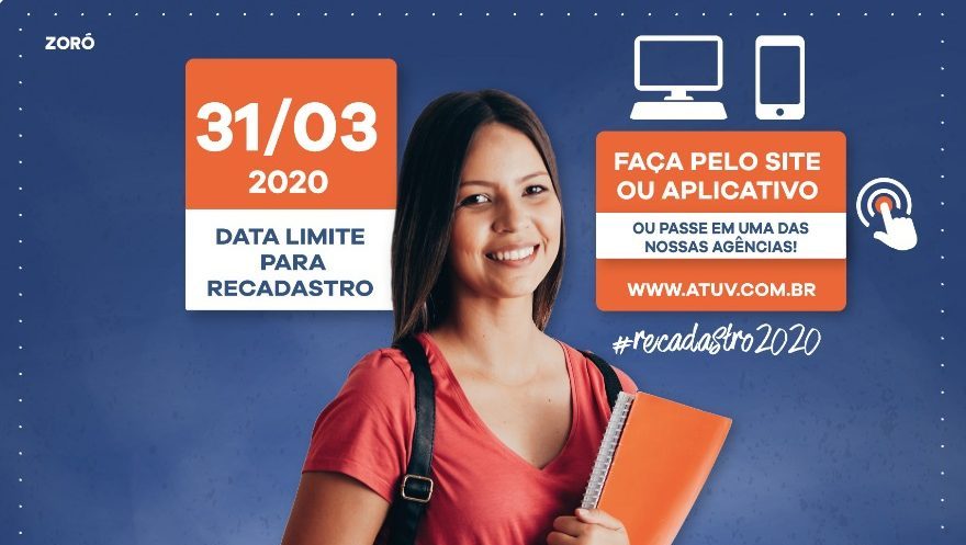 Os estudantes podem comparecer a qualquer agência da Atuv apresentando originais e cópias do RG, CPF, comprovante de residência e o cartão eletrônico (quem já possui). Lembrando que os estudantes que não fizerem o recadastramento dentro do prazo terão os cartões bloqueados.