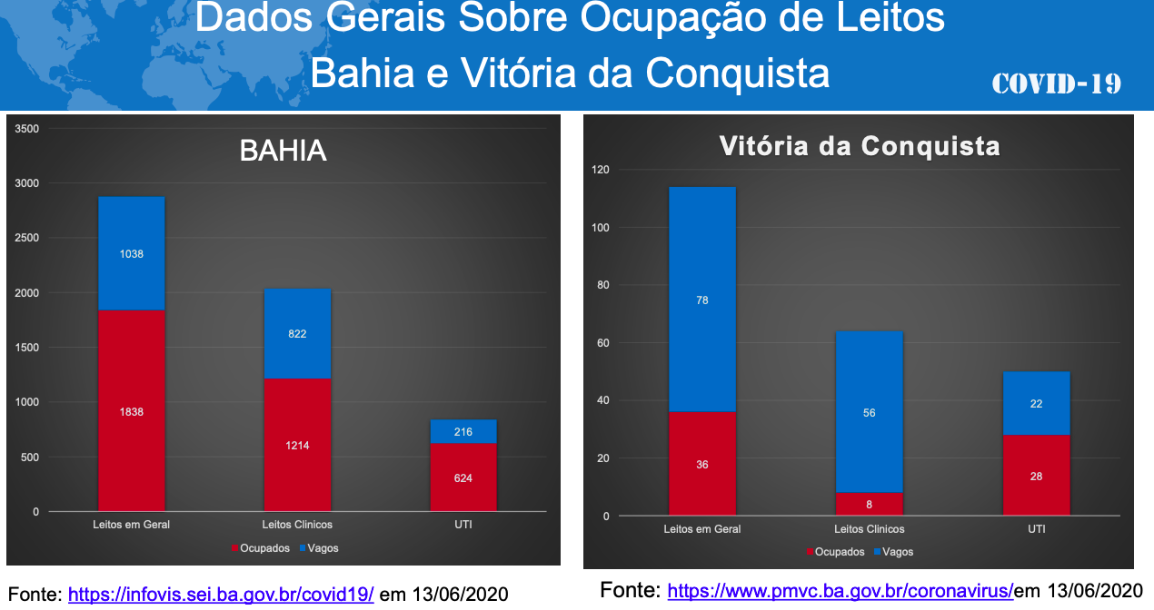 Também é importante destacar que, em relação aos dados nacionais e estaduais, Conquista registra um percentual muito inferior de pessoas com vírus ativo e um maior número de pacientes curados. Esse dado reflete diretamente na taxa de ocupação de leitos. Conforme o último boletim epidemiológico divulgado nesse sábado (13), apenas 4,7% dos pacientes internados em leitos clínicos e 14% em UTIs são de Vitória da Conquista. Os demais foram trazidos pelo Estado de outros municípios.