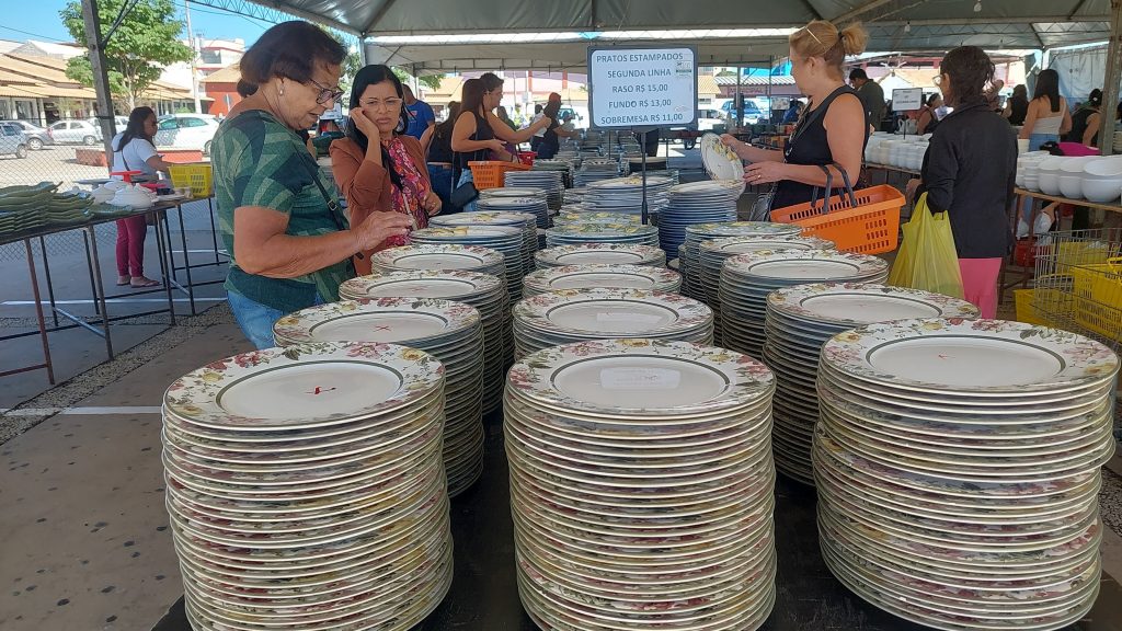 A família Ribeiro aprecia o material em louças e passou isso para Ana Luísa, uma das organizadoras da feira. Na manhã desta quinta-feira (18), ela se revezava entre o papel de vendedora e de boa neta, acompanhando a sua avó Anabel e a tia Jucimare. “Estou trabalhando e minha avó veio aqui, com 86 anos, ver as louças. Tem muita coisa que ela já tem e aí veio aqui fazer umas compras também. Minha tia já está ali pegando mais algumas coisas”, disse a neta. “Gostei. Está sendo ótimo”, resumiu a avó.