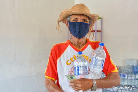 Felícia Lemos Prates, de 65 anos, tem seis filhos, 17 netos e três bisnetos, levou uma cesta para ela e outras três para seus filhos que moram em casas separadas. “Estou feliz da vida. Isso aqui está vindo de Jesus Cristo, só ele para mandar estes anjos do céu”, declarou Felícia, referindo-se às equipes da Semdes e da Defesa Civil.