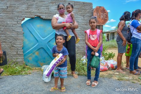 Quem também comemorou e agradeceu foi Juciana Viana dos Santos, de 34 anos que recebeu uma cesta básica e um pacote de fraldas. “Lá em casa somos só eu, meu marido e meus três filhos. Isso está ajudando muito, porque a gente não tá trabalhando”, comentou Juciana.