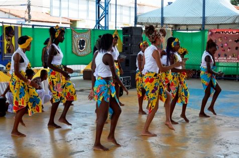 Música, penteado e dança afro, exposição de trabalhos manuais, muito colorido e animação marcaram a Feira Cultural do projeto “Trançando Africanidades – Vivências Afro-brasileiras na Rede Municipal de Educação de Vitória da Conquista”. Realizada nesta sexta-feira (23), o evento movimentou o Estádio Municipal Edvaldo Flores com a presença de alunos, professores, coordenadores e equipe da Secretaria Municipal de Educação (Smed).