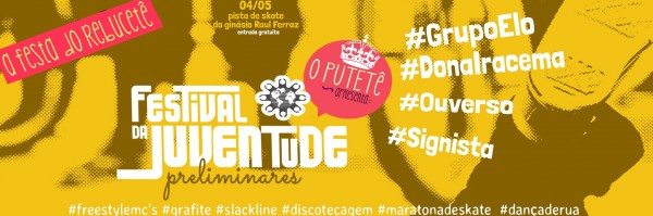 O coletivo “O Rebucetê”, em parceria com a Prefeitura Municipal de Vitória da Conquista realiza, no próximo sábado, 4, uma prévia do Festival da Juventude -Ano II. A atividade, chamada “O Putetê” Preliminares, contará com apresentações de grupos de rock e rap, além da interação com outros segmentos da arte. Os esportes radicais também estarão presentes no evento, que acontecerá no Ginásio de Esportes Raul Ferraz, das 14h às 20h.