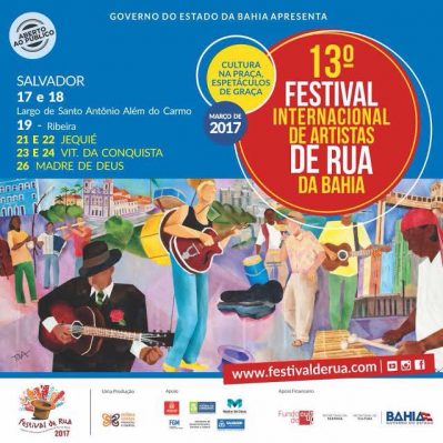 O Festival Internacional de Artistas de Rua da Bahia foi criado há 15 anos e em 2016 foi novamente selecionado para mais três edições no estado (2017, 2018 e 2019) pelo Edital Eventos Calendarizados com Apoio Financeiro do Fundo de Cultura da Secretaria de Cultura e da Secretaria da Fazenda do Governo do Estado da Bahia. A 13ª edição tem apoio financeiro do Governo do Estado, através do Fundo de Cultura, Secretaria da Fazenda e Secretaria de Cultura da Bahia.
