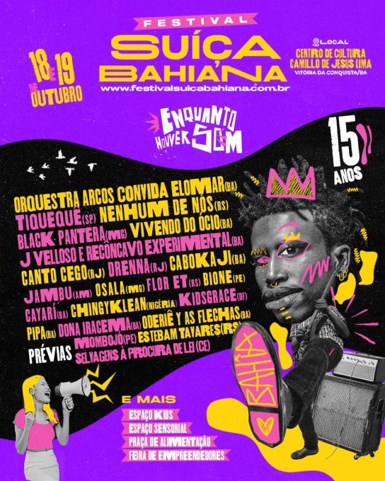 Com curadoria que valoriza a diversidade musical, o Suíça Bahiana completa 15 anos e segue reafirmando seu papel como plataforma para diferentes gêneros e gerações. Este ano, o evento comemora a conquista do Selo IGUAL, chancela do Women’s Music Event (WME), que reconhece iniciativas comprometidas com a equidade de gênero na música, e o feito de ter sido apontado pela revista Zumbido, do Selo Sesc, como o 3º festival do país com maior presença feminina no line-up.
