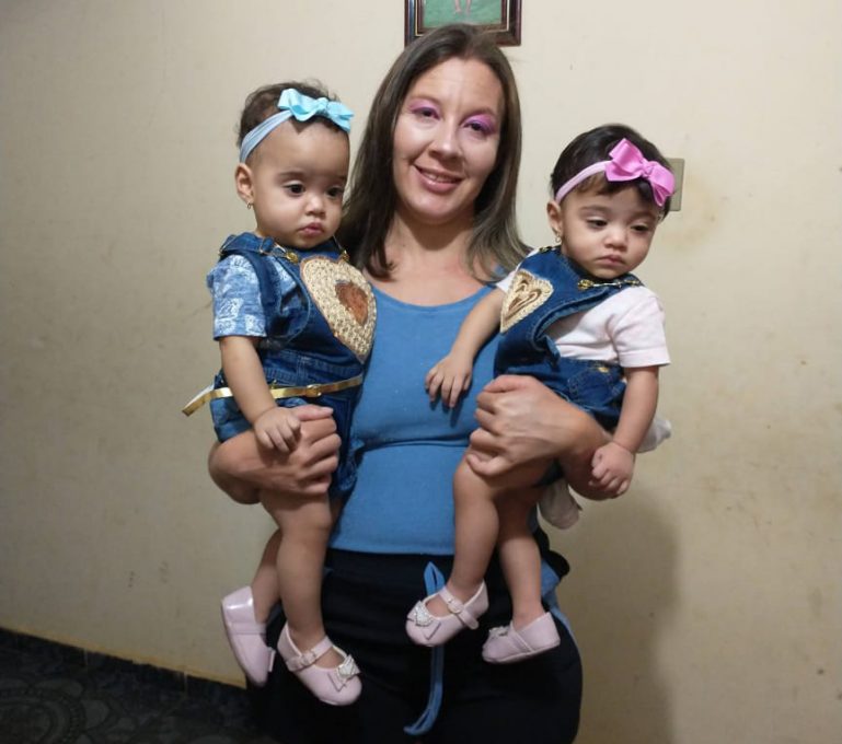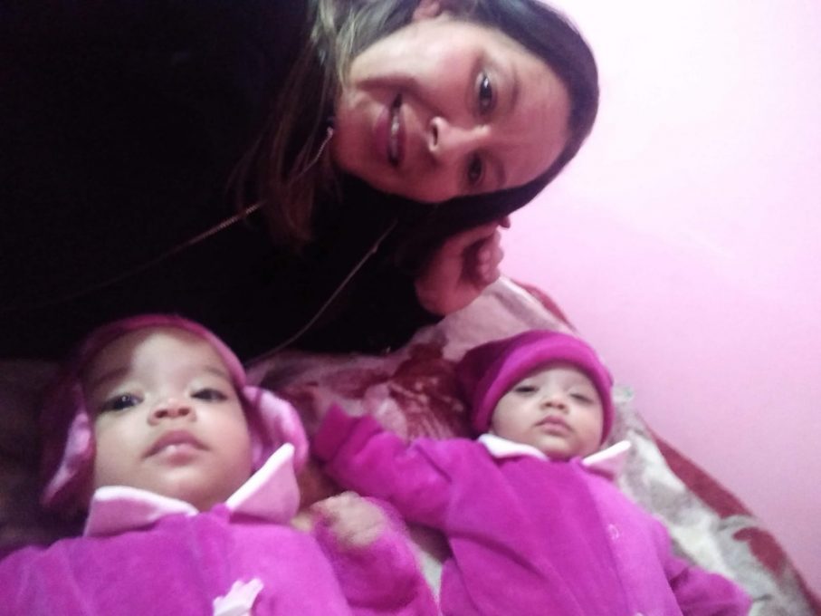 Daniele e as gêmeas, que já estão com um ano e três meses