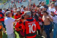 Sensação única sentida pelo ex-jogador da equipe de futsal de Vitória da Conquista, Rubenbaldo. “É uma alegria muito grande prestigiar atletas que fizeram a alegria da torcida rubro-negra há cerca de 40 anos anos e ainda mais compartilhar da alegria de jogar com eles”, ressaltou. Os atletas do time master do Flamengo expressaram felicidade de estar em campo mais uma vez e contar com a recepção da torcida. “Agradeço ao carinho da torcida, somos sempre bem recebidos onde chegamos e aqui não foi diferente”, disse Andrade, que aos 63 anos jogou o primeiro tempo e depois distribuiu autógrafos entre os torcedores”.