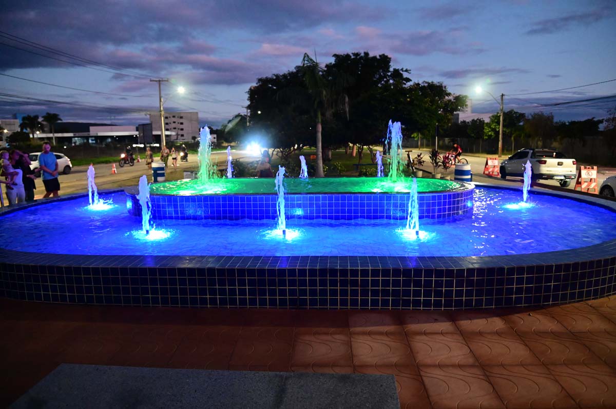 A intervenção trouxe uma nova proposta visual para a fonte, com a criação de um patamar interno, além de iluminação especial e um piso artesanal que valoriza ainda mais o espaço. O monumento segue homenageando os principais cursos d’água do município, com destaque para os rios Piripiri e Pardo, representados pelos jatos mais altos.