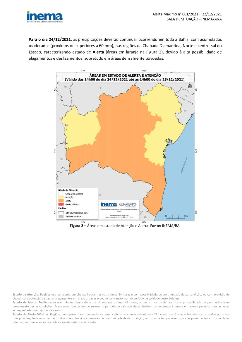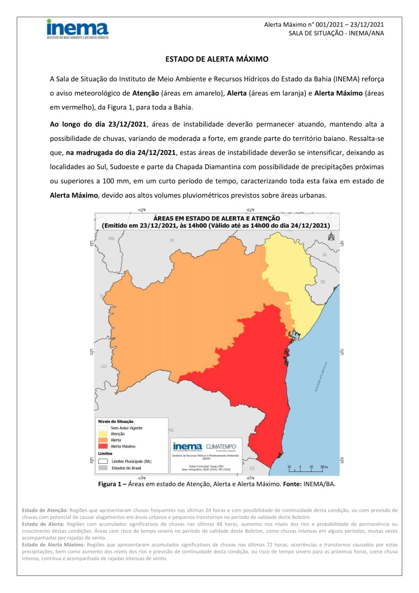 Nesta tarde (23), uma equipe foi até a região de Pradoso para instalar um cano a fim de que a água pluvial escorra mais rápido. De acordo o Instituto de Meio Ambiente e Recursos Hídricos do Estado da Bahia (Inema), Vitória da Conquista está em alerta máximoaté às 14h de amanhã (24) e em alertaaté às 14h do dia 25.