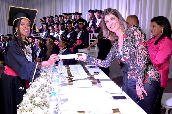 A solenidade de formatura da Turma 2017.2 foi realizada no Mediterrâneo Monumental Casa de Eventos* com as presenças do “Patrono da Turma”, o presidente da Câmara de Vereadores, Hermínio Oliveira; da “Paraninfa da Turma”, a coordenadora geral do Programa Conquista Criança, Marizete Cruz Viana da França; da coordenadora do curso de Bordados do programa, Roseane Chaves Gotado, e da estilista Leidiane Santana Flores.
