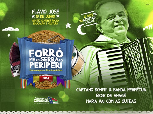 Na segunda noite de programação do Forró Pé de Serra do Periperi, quem se apresenta é o forrozeiro Flávio José. Em seu show, que acontece no palco montado no Centro Glauber Rocha – Educação e Cultura, nesta quinta, 19, o artista demonstra todo o vigor da cultura popular nordestina.