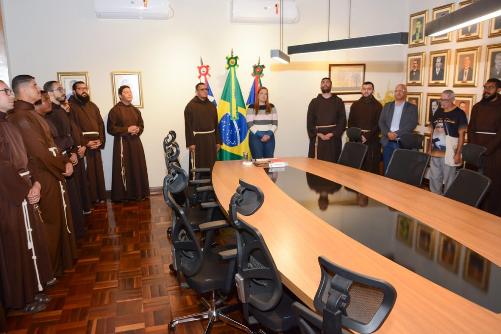 Na manhã desta segunda-feira (10), mais de 40 frades conheceram o prédio da Prefeitura, acompanhados do vereador Luís Carlos Dudé. No final da visita, eles foram recepcionados pela prefeita Sheila Lemos. “Agradecemos a todos pela hospitalidade, esperamos que essa semana seja frutuosa e desejamos que este governo cuide cada vez mais dos mais necessitados”, disse o Frei Filipe, que está no sétimo ano de estudo e é filho de Vitória da Conquista.