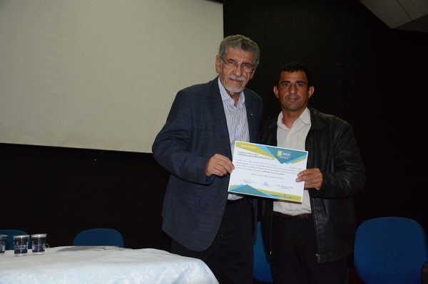 Maria Tânia e Damião representaram os garis na mesa que abriu a cerimônia de entrega dos certificados. Ambos receberam os seus das mãos do secretário de Serviços Públicos, Ivan Cordeiro, e do prefeito Herzem Gusmão, respectivamente.