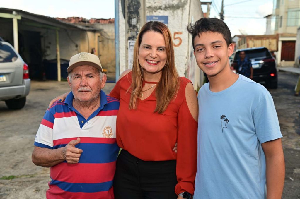 - José Gonçalves e seu neto Pietro, acompanhados da prefeita Sheila Lemos na Rua da Conceição