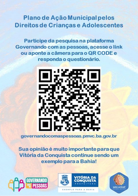 A iniciativa busca ampliar a participação social no processo de construção e de monitoramento das políticas públicas voltadas à infância e adolescência de Vitória da Conquista. As contribuições registradas na enquete irão subsidiar a definição de prioridades e auxiliar na implementação de ações integradas que poderão impactar o planejamento e a gestão do Orçamento da Criança e do Adolescente (OCA) nos próximos anos.