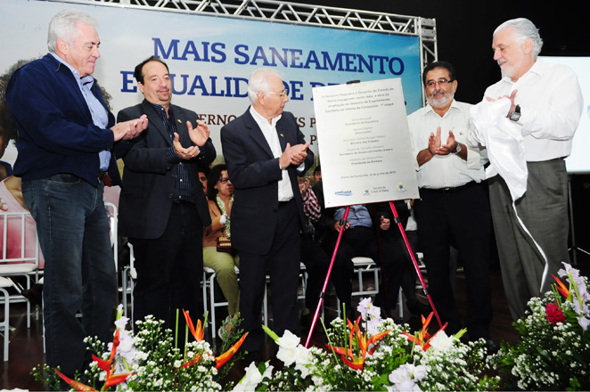 Foi inaugurada, na manhã desta sexta-feira, 14, a primeira etapa da obra de ampliação do Sistema de Esgotamento Sanitário de Vitória da Conquista. A solenidade, realizada no auditório do Centro Municipal de Atenção Especializada (Cemae), contou com a presença do governador Jaques Wagner, do vice-governador Otto Alencar e do prefeito Guilherme Menezes. Também estiveram presentes vereadores, deputados e senadores.