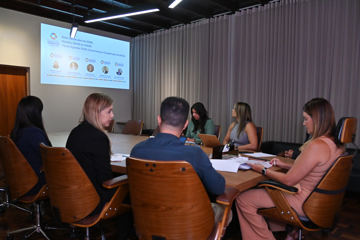A reunião aconteceu no Salão Nobre do Palácio da Joia do Sertão Baiano, sede do Governo Municipal. A prefeita Sheila Lemos esteve acompanhada dos secretários da Casa Civil, Ivanildo da Silva, de Relações Institucionais, Kalilly Lemos, e de Finanças e Execução Orçamentária, Rodrigo Bulhões, além da coordenadora do Centro de Governança ODS, Ludmila Araújo.