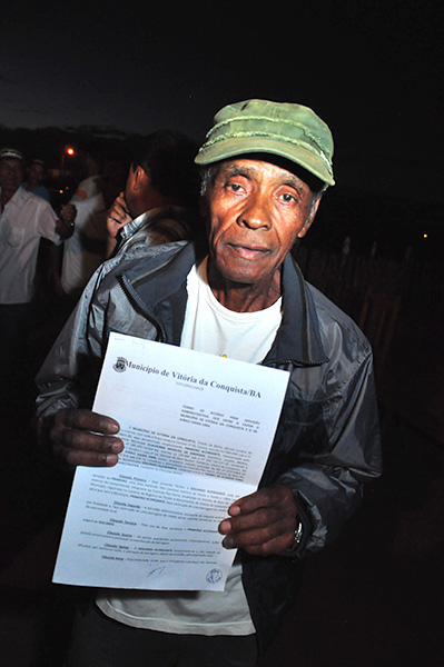 O anfitrião, o agricultor Juraci Vieira Lima, mostrou-se ciente de que, embora seja o proprietário do terreno onde a obra será executada, a aguada pertencerá a toda a população local. “A maior parte da comunidade precisa de água”, disse. “Meu filho procurou um lugar para a construção da barragem, mas não encontrou. Eu tinha, e arrumei. Estou satisfeito, pois acho que, de agora para a frente, não vai faltar água para nós”, acrescenta o agricultor, confiante.