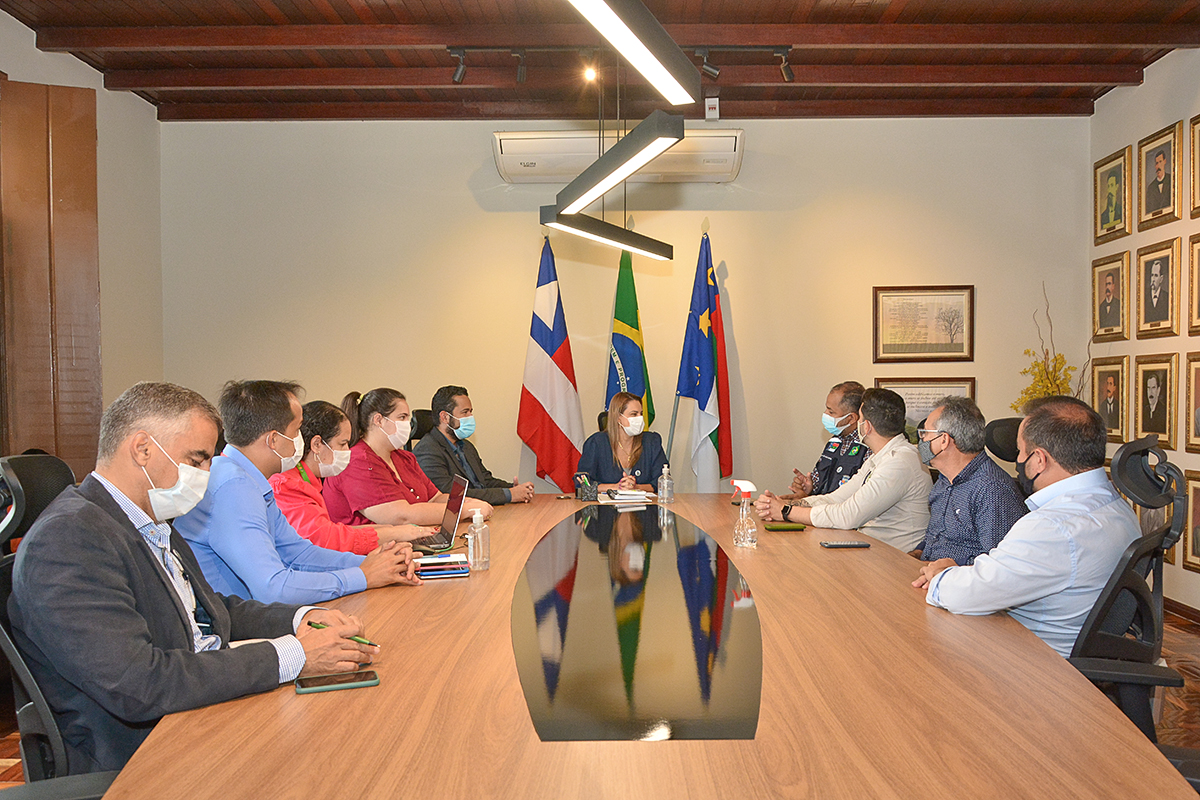 A reunião contou com a presença do secretário chefe do Gabinete Civil, Lucas Dias, da secretária de Meio Ambiente, Ana Cláudia Passos, do secretário de Infraestrutura Urbana, Jackson Yoshiura, do secretário de Serviços Públicos, Luís Paulo Souza, do coordenador de Iluminação Pública, José Marques, e do assessor especial Marcelo Melo.