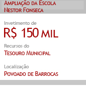 Durante o X Congresso do Orçamento Participativo, foi estabelecida como demanda prioritária: a ampliação da Escola Municipal Nestor Fonseca, no povoado de Barrocas. Após o Governo Municipal, por meio da Secretaria Municipal de Educação, viabilizar os recursos, as obras foram iniciadas. Agora, a ampliação será entregue à comunidade nessa quinta-feira, 6 de agosto, às 15h.