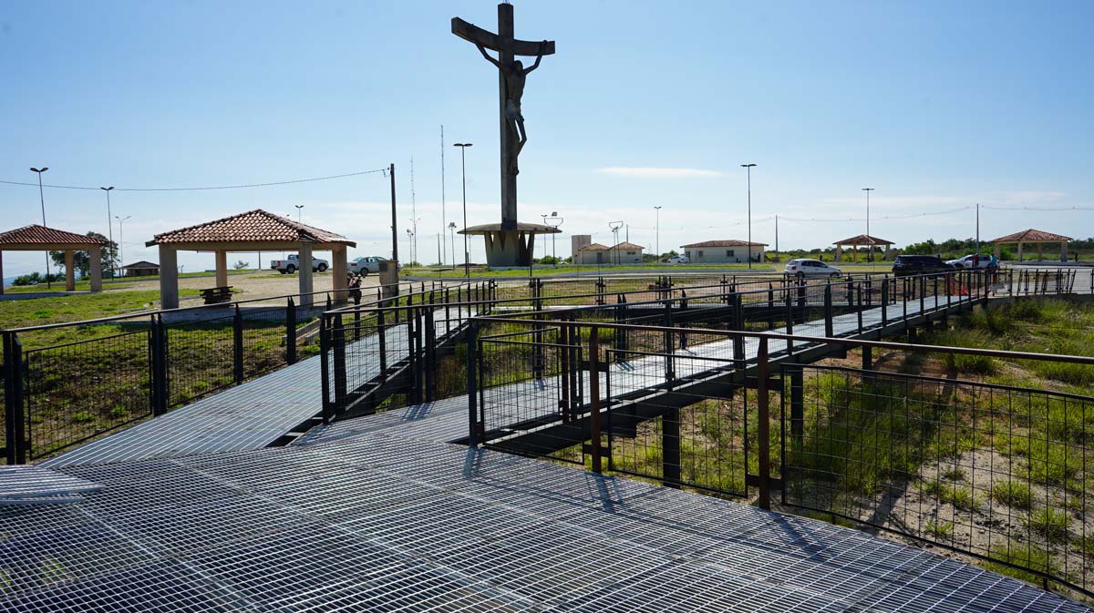 Na sequência, a comitiva visitou a obra de revitalização da área ao redor do Monumento do Cristo, no alto da Serra do Periperi. Lá, são finalizados o piso das passarelas que levam ao mirante e o piso drenante, afixado no acesso ao estacionamento.