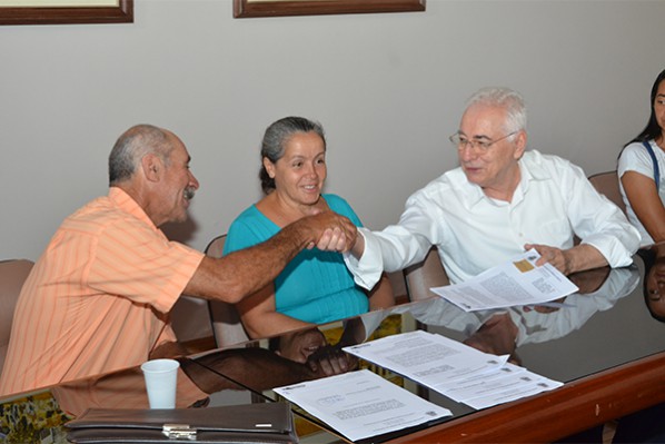 Ao cravarem suas assinaturas no termo de servidão administrativa, durante a reunião realizada na manhã desta quarta-feira, 1º de outubro, no Salão Nobre do Gabinete Civil da Prefeitura, os agricultores Gildenivo Pereira, o “Nivinho”, e sua esposa Percília, a “Neta”, deram o passo que faltava para que a Prefeitura iniciasse a construção de mais uma barragem na zona rural. A obra – a 18ª desde o início de 2013 – será feita no povoado de Boi Preto, próximo à Lagoa do Batista, a cerca de dez quilômetros do distrito de José Gonçalves. As obras deverão ser iniciadas nos próximos dias.