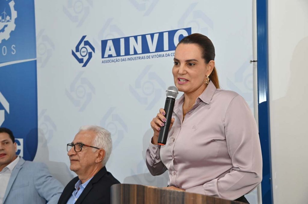 A prefeita Sheila Lemos participou da cerimônia de posse dos novos integrantes da diretoria e do conselho fiscal da Associação das Indústrias de Vitória da Conquista (Ainvic), realizada nesta terça-feira (12), na sede da entidade, localizada no Distrito Industrial dos Imborés.