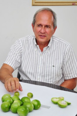 Uma vez por mês, o secretário municipal de Agricultura, Odir Freire, se reúne com todo o grupo de técnicos ligados à pasta, a fim de planejar as ações que serão desenvolvidas durante o mês seguinte. A que houve na tarde desta segunda-feira, 27, teve um componente a mais: a presença de autênticos exemplares de umbu gigante, cultivados e colhidos na Fazenda Experimental, uma área de 10 hectares mantida pela Prefeitura na região da Pedra Mole, a cerca de 30 quilômetros da área urbana de Vitória da Conquista. Ali existem mais de 700 umbuzeiros de quase 30 tipos de umbu gigante.