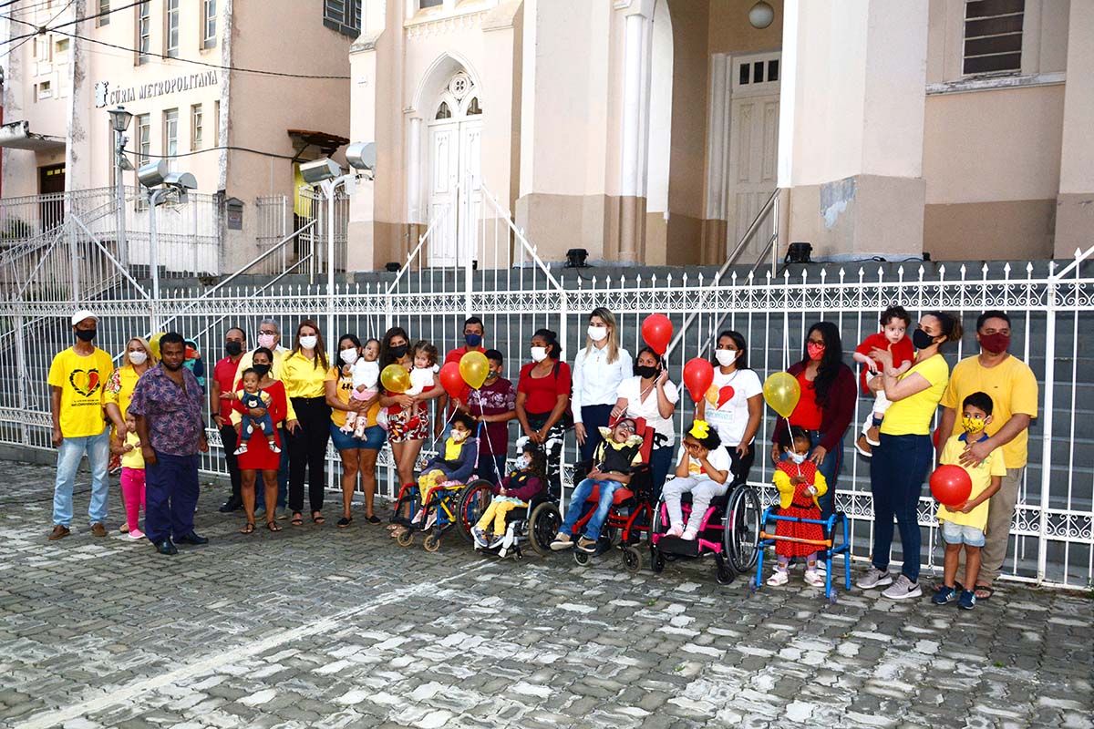 Ao final do evento, pais, amigos e crianças soltaram balões em frente a Catedral Nossa Senhora das Vitórias que também foi iluminada com luzes amarelas e vermelhas para marcar e relembrar a importância do dia.