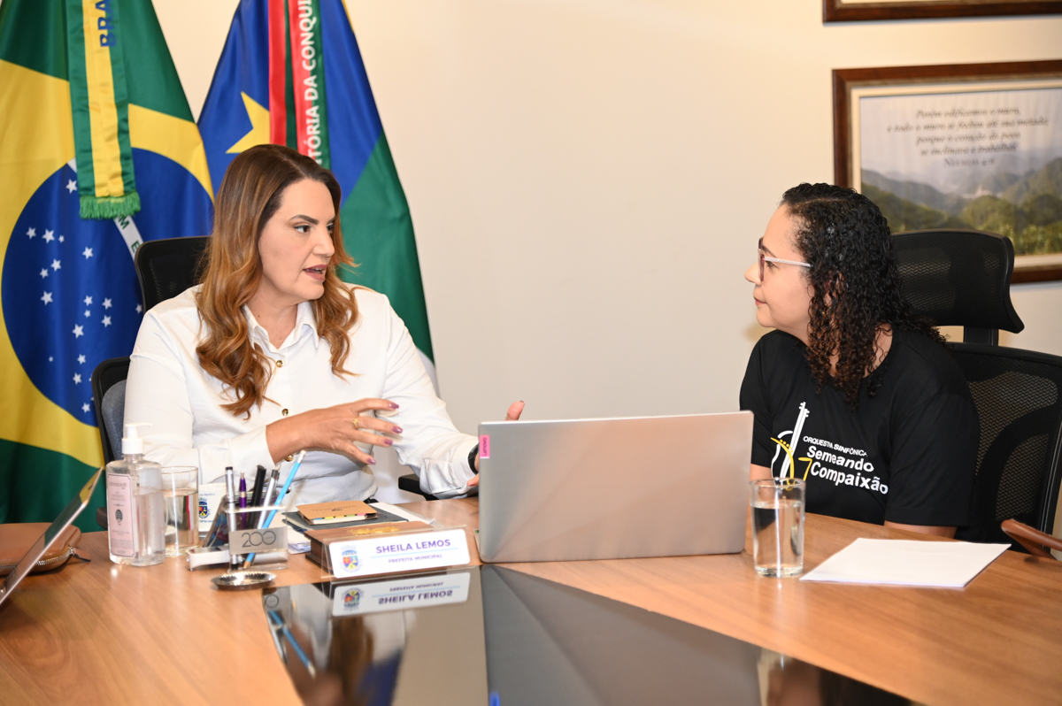 O Governo Municipal realizou, na manhã desta segunda-feira (9), uma audiência com a presidente da Associação Semeando com Paixão, Eliana Quadros, cujo intuito foi o de conhecer a ampliação do projeto e a nova sede da iniciativa, localizada no bairro Bruno Bacelar. O encontro, que aconteceu no gabinete civil, também tratou de possíveis parcerias pública-privada entre a instituição e a Prefeitura.