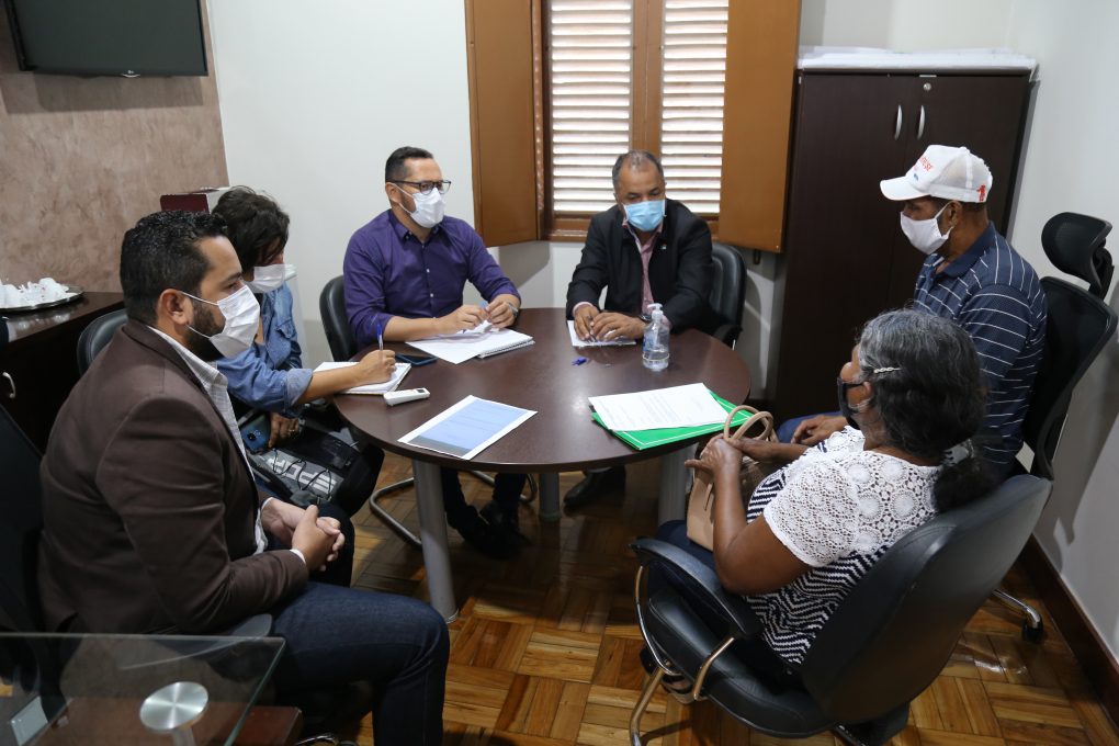 Eles foram recebidos pelos secretários Lucas Dias, do Gabinete Civil; Luís Paulo Santos, de Serviços Públicos, e Michael Farias, do Desenvolvimento Social, e pela coordenadora de Promoção da Igualdade Racial, Olinda Pereira.