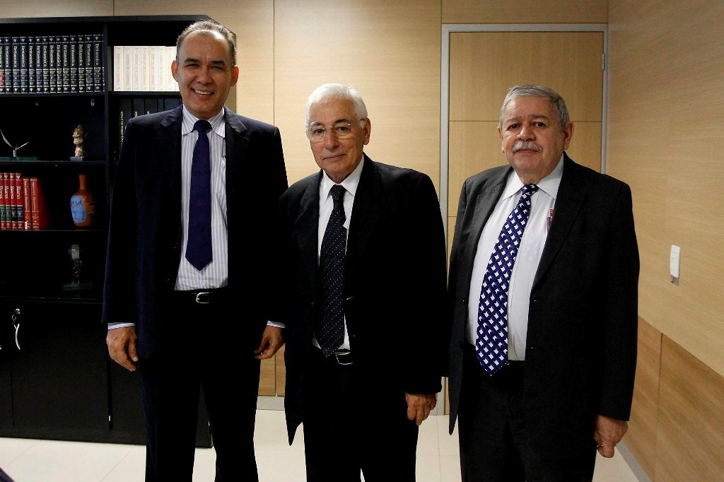 Ministro da Integração Nacional, Francisco Teixeira (esq.), Guilherme Menezes, prefeito de Vitória da Conquista (centro), e o engenheiro, Dr. Hypéricles Macêdo (dir.)