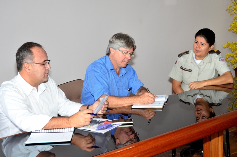 Um encontro realizado no Salão Nobre do Gabinete Civil, na manhã desta terça-feira, 28, reuniu o chefe do Gabinete da Prefeitura, Márcio Higino Melo – que, na oportunidade, representou o prefeito Guilherme Menezes -, o secretário municipal de Educação, Valdemir Dias, e a coordenadora do projeto Patrulhando a Cidadania, a subtenente Luciana Gomes. Durante a conversa, tratou-se de assuntos referentes à parceria entre o Governo Municipal e a Polícia Rodoviária Estadual, que mantém o projeto em funcionamento há nove anos.