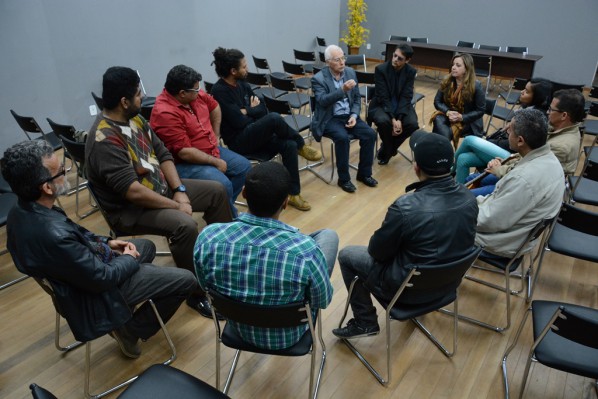 A agenda do Governo Municipal na última quarta-feira, 12, foi concluída no auditório da Praça CEUs. No último compromisso oficial do dia, já ao anoitecer, a boa acústica do lugar favoreceu a conversa, que transcorreu em clima descontraído, e também algumas intervenções artísticas – simplesmente inevitáveis, já que ali só havia músicos e compositores: o prefeito Guilherme Menezes e os professores do Conservatório Municipal de Música.