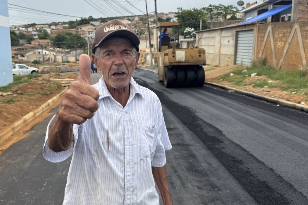 Outro morador que acompanhava desde cedo o asfalto de sua rua era Edivaldo dos Santos, 65. Nascido e criado no local, ele falou da valorização que vem com a pavimentação. “Melhorou bastante, valorizou as coisas, melhorou 100%. Foi bom, bom, bom”, disse. Além da Rua A e da Constelação, são pavimentadas as vias J.O. Lima, São Cristóvão, o Beco da Alegria e a Travessa da Constelação.
