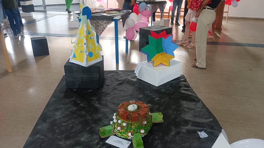 O grande destaque foi o trabalho realizado pelas alunas Gleice Kelle Rocha e Renata Lima, da Escola Municipal Cláudio Manuel da Costa. Com o título “Incluindo com frações”, a criação conquistou o primeiro lugar na categoria Escultura e também na geral Obras em Destaque. A professora orientadora Sabrina Oliveira Santos se mostrou orgulhosa pelo fato de o trabalho ter sido mostrado ao público. “Estamos mostrando que a inclusão, sim, é possível. Não é fácil. Tem dias que, para conseguir alguma atividade, busco o lúdico, material concreto, para trazer o interesse à disciplina. E, graças a Deus, esse é o fruto do nosso trabalho, nós conseguimos com êxito”, relatou Sabrina.