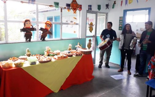 A música ao vivo ficou por conta de um trio de forró com sanfona, triângulo e zabumba. Quem participou pôde saborear uma mesa farta de comidas típicas e recebeu maquiagem a caráter. Os alunos do PET fizeram fotos, com revelação instantânea, que vão compor o “Mural de Todos Nós”, que ficará disponível para o público da unidade.
