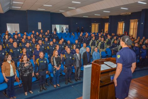 A Guarda Civil Municipal (GCM) realizou, nessa segunda-feira (12), solenidade em comemoração aos dois anos de atuação da corporação em Vitória da Conquista, completados no último dia 2. O evento, realizado no auditório Lúcia Dórea (Cemae), contou com a presença da prefeita Sheila Lemos.