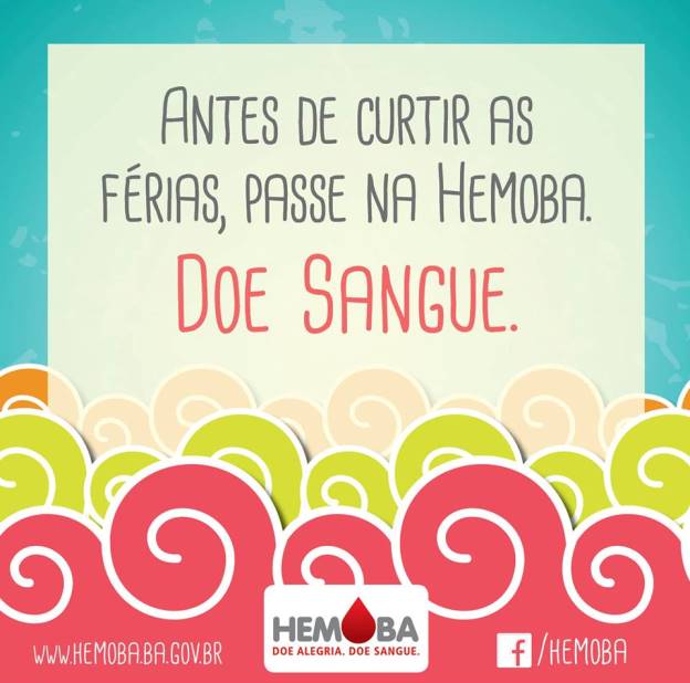 Os interessados em doar sangue devem comparecer à Hemoba, situada no Hospital Geral de Vitória da Conquista (Hospital de Base), das 7h30 às 11h, de segunda a sexta-feira; e das 13h30 às 15h30, nas segundas, terças e quintas-feiras. Mais informações pelo telefone (77) 3427-4501.