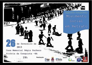 “Movimento Social em Retrato” é o tema da exposição fotográfica que ocorrerá no período de 26 de fevereiro a 3 de março, na Casa Memorial Régis Pacheco. A atividade é uma promoção do Laboratório de História Social do Trabalho da Universidade Estadual do Sudoeste da Bahia (LHIST/Uesb) e conta com recursos do Programa de Extensão Universitária do Ministério da Educação (Proext/Mec).