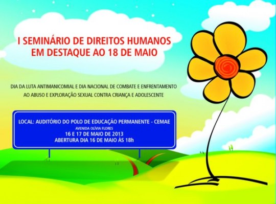 A Prefeitura de Vitória da Conquista, por meio das secretarias municipais de Desenvolvimento Social e de Saúde, promove nesta quinta e sexta-feira, 16 e 17 de maio, o I Seminário de Direitos Humanos do município. Em destaque, o 18 de maio data que marca o Dia da Luta Antimanicomial e o Dia Nacional de Combate e Enfrentamento ao Abuso e Exploração Sexual contra Criança e Adolescente.